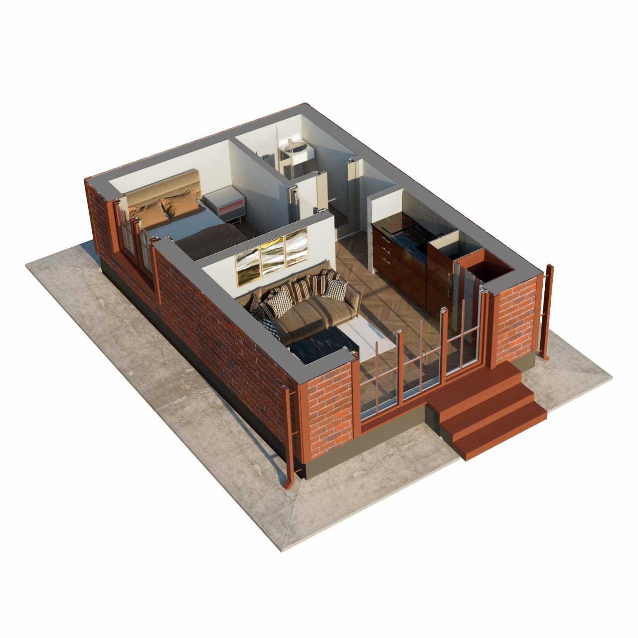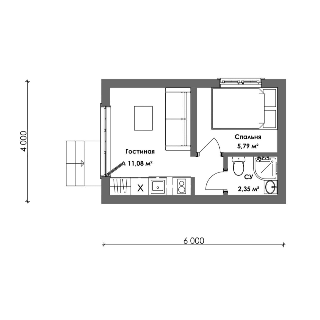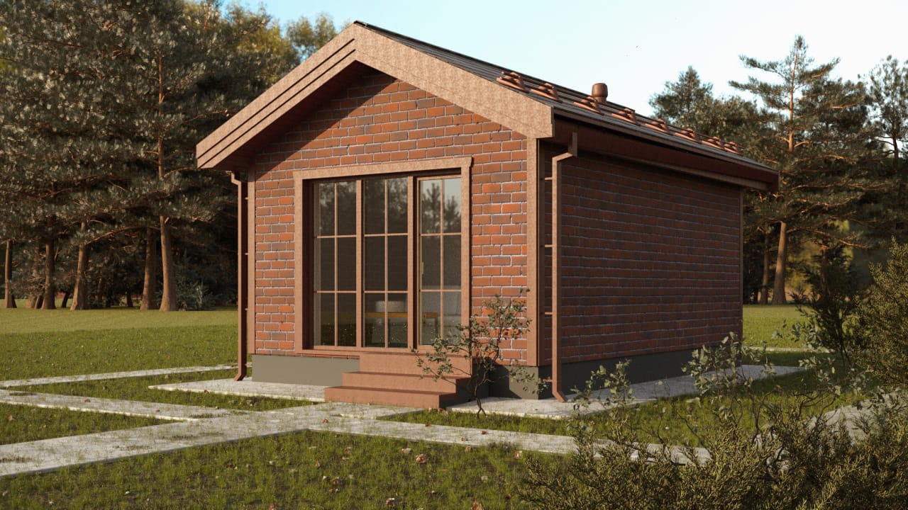 Дом из СИП-панелей с удобной планировкой: гостиная, спальня, с/у. Общая площадь: 24 м2