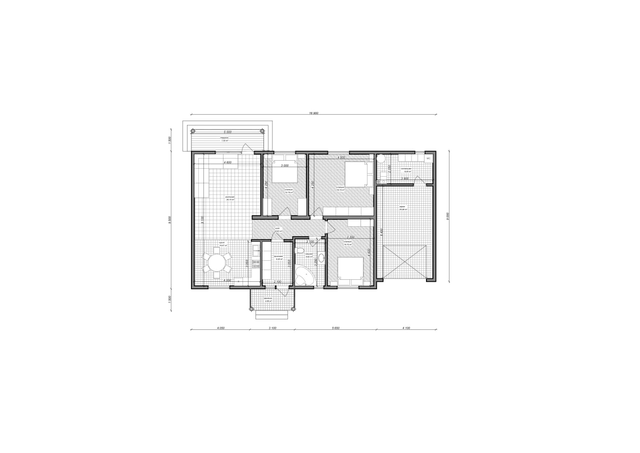 Дом из СИП-панелей, с удобной планировкой: кухня-гостиная, котельная, гараж, прихожая, с/у, терраса, холл, 3 спальни. Общая площадь дома (с террасой и крыльцом): 170,6 м2.