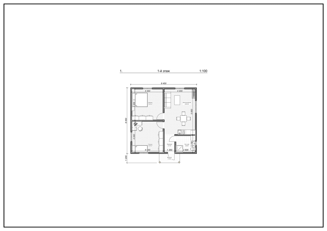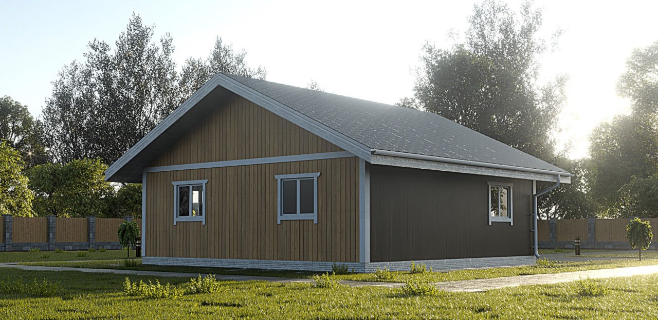 Дом из СИП-панелей, с удобной планировкой: кухня-гостиная, прихожая, с/у, 2 спальни. Общая площадь дома (с крыльцом): 74,6 м2.