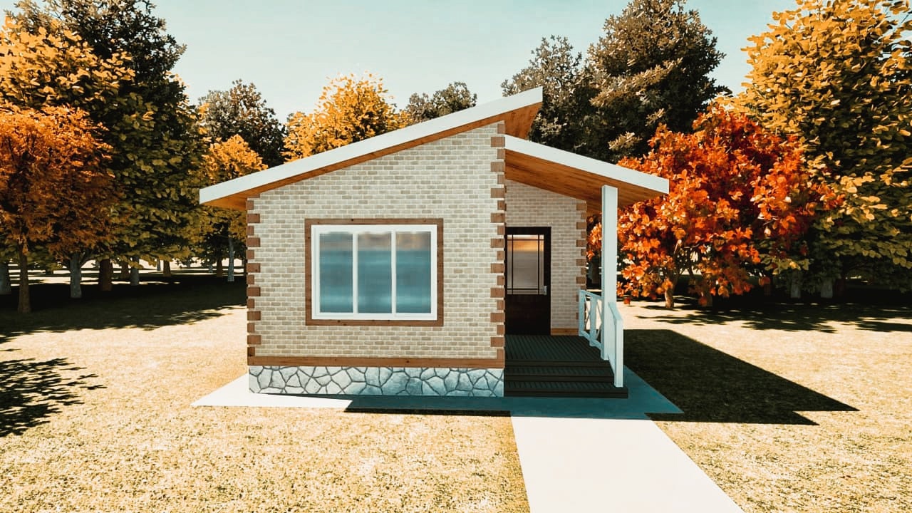 Дом из СИП-панелей с удобной планировкой: кухня-гостиная, с/у, тамбур, крыльцо. Общая площадь: 36 м2