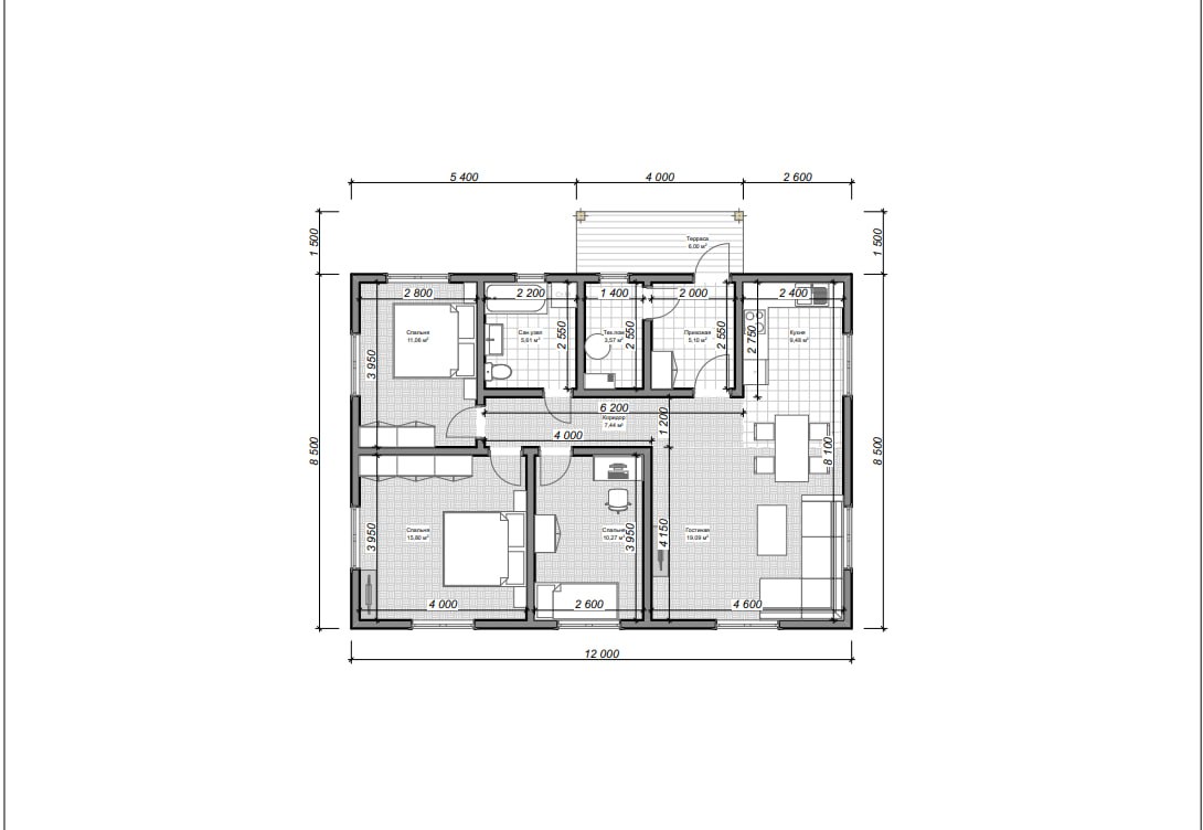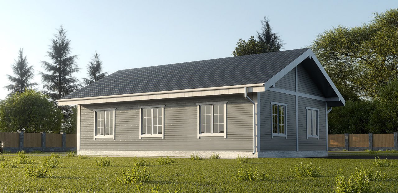 Дом из СИП-панелей, с удобной планировкой: кухня, гостиная, тех. помещение, коридор, 3 спальни, с/у ,прихожая, терраса. Общая площадь дома (с террасой): 108 м2.